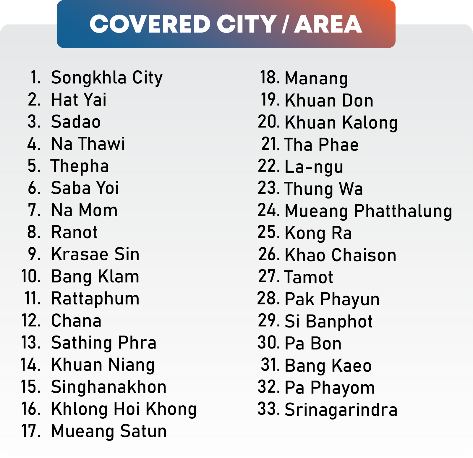 Stuck on the roadside in an unfamiliar place? We’ve got your back. Our towing service in Thailand covers selected areas such as Satun Province, Songkhla Province, Phatthalung Province & Betong District and ensures you’re never truly alone. Whether it’s a breakdown, flat tire, or emergency situation, we’re just a call away with fast response times and friendly support.